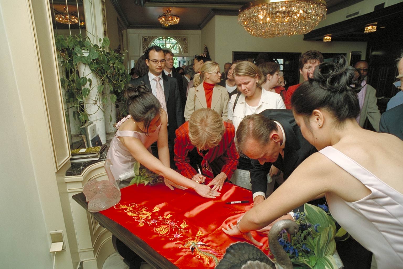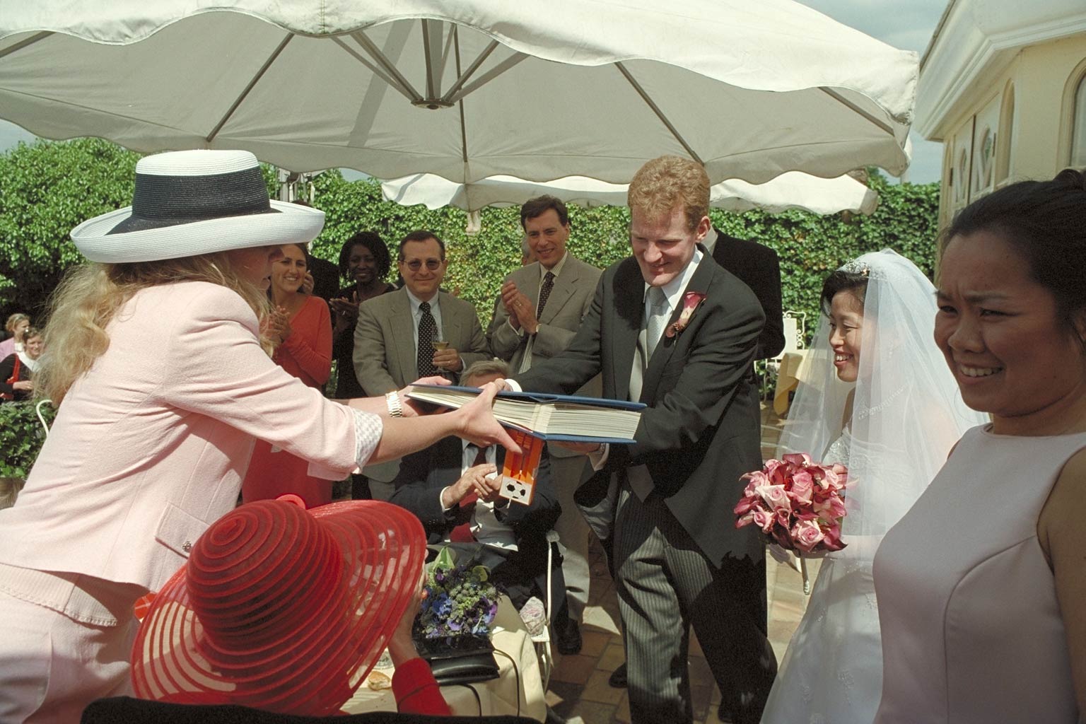 Direct links: Main page Pictures of the morning, including the ceremony at City Hall Pictures of the church ceremony Pictures taken during the photo session Tea Ceremony Evening reception, with dinner and dancing